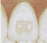 speziellen Kleber auf die Zähne aufgeklebt. Von vorne